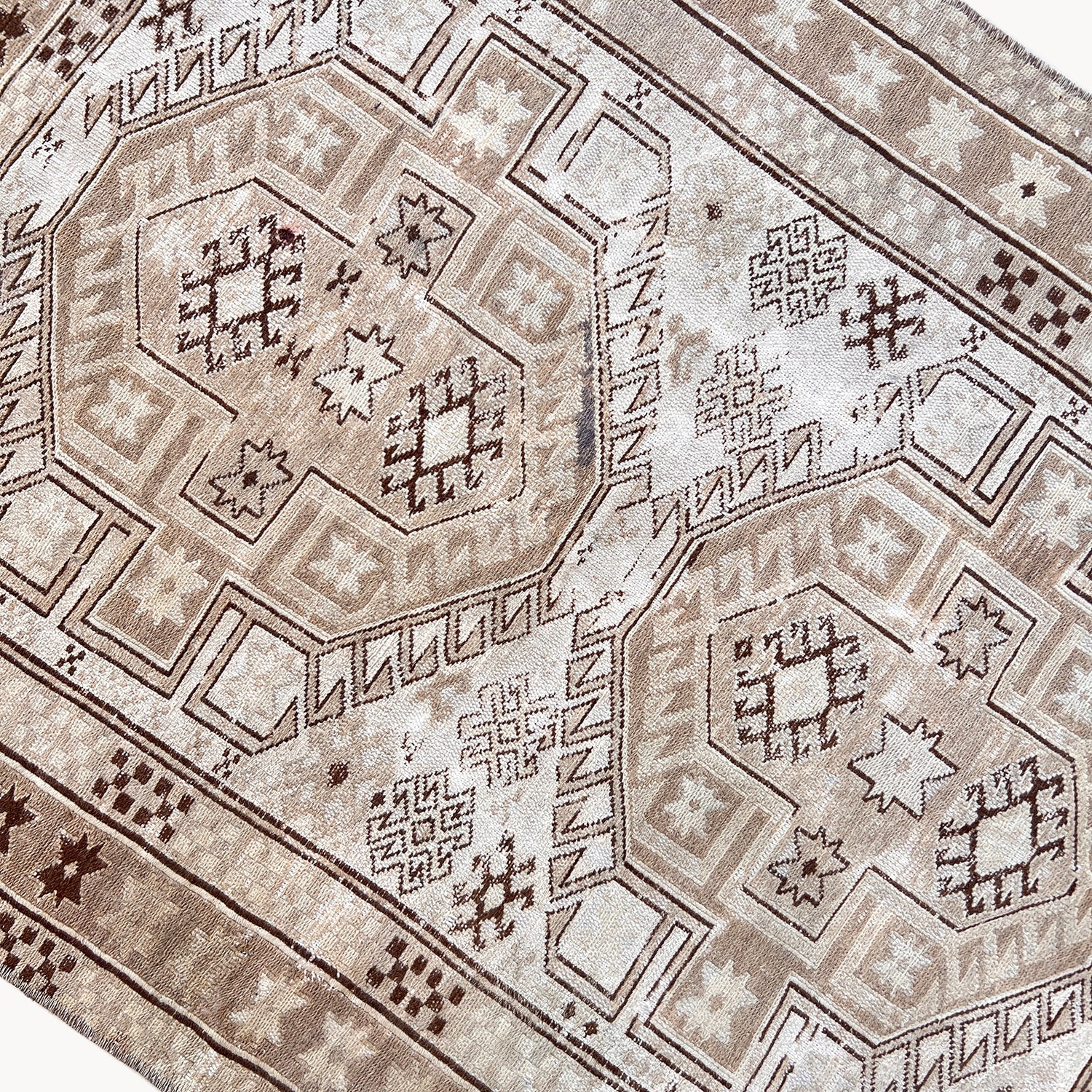Due to the vintage and handmade nature of our rugs, there may be minor imperfections and signs of wear. We believe this adds character to the piece and lends to each rug being truly one of a kind.