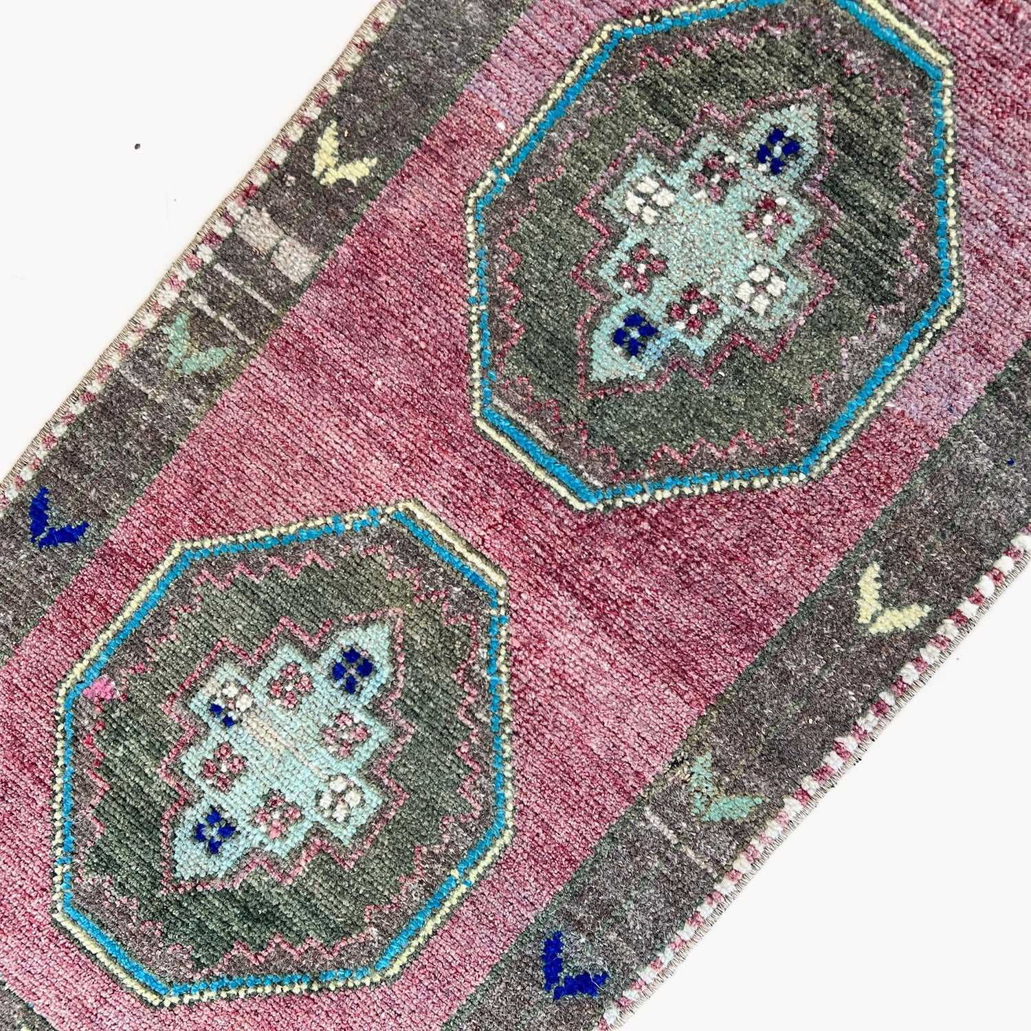 Due to the vintage and handmade nature of our rugs, there may be minor imperfections and signs of wear. We believe this adds character to the piece and lends to each rug being truly one of a kind.