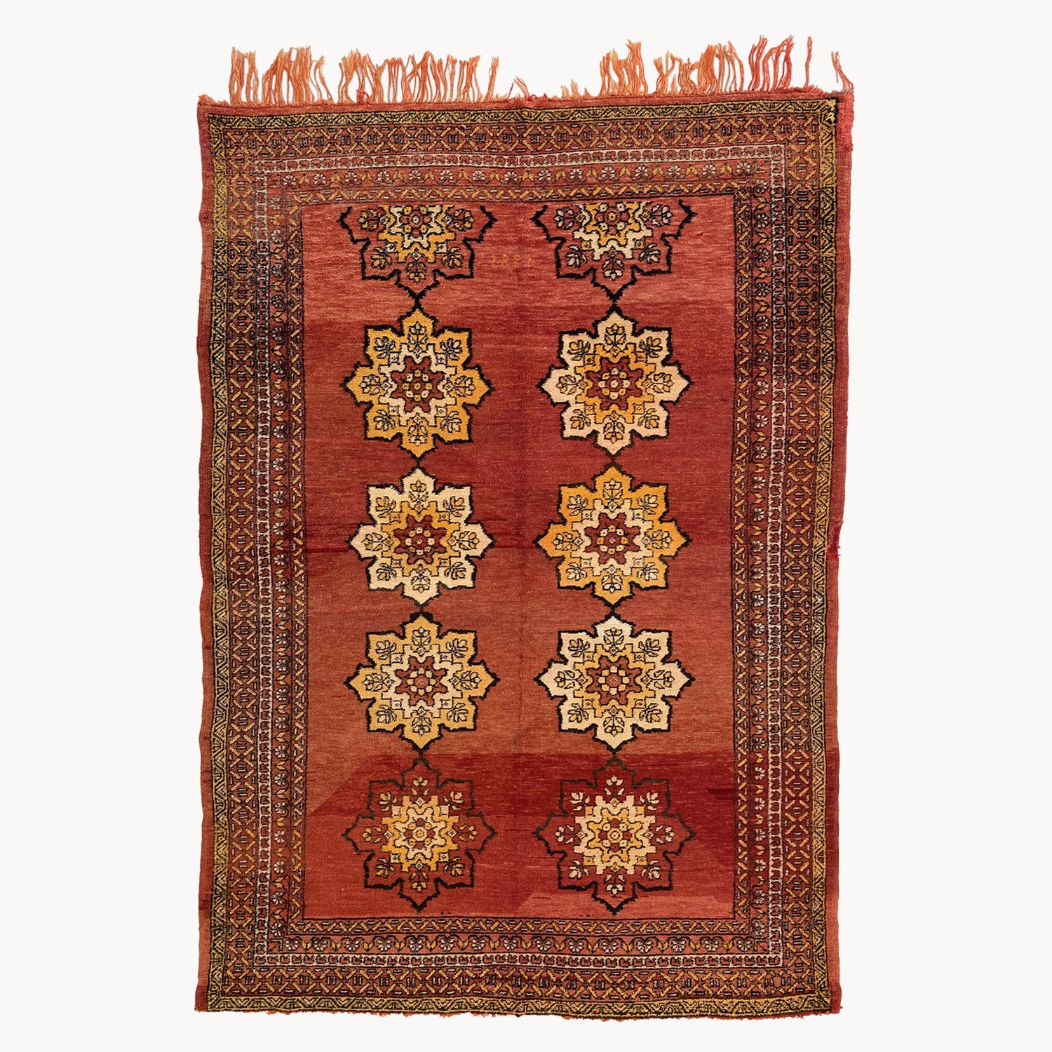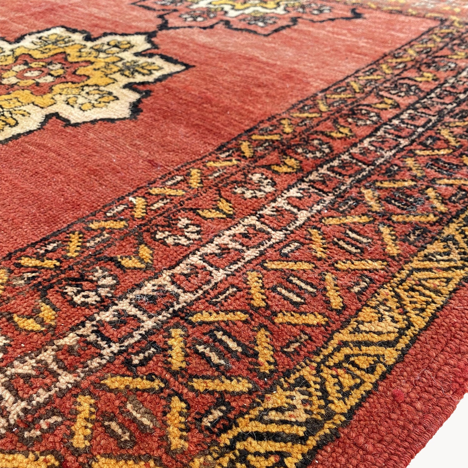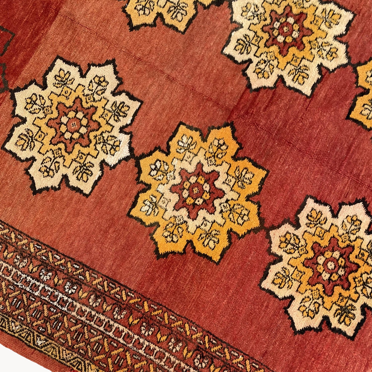 - Due to the vintage and handmade nature of our rugs, there may be minor imperfections and signs of wear. We believe this adds character to the piece and lends to each rug being truly one of a kind.