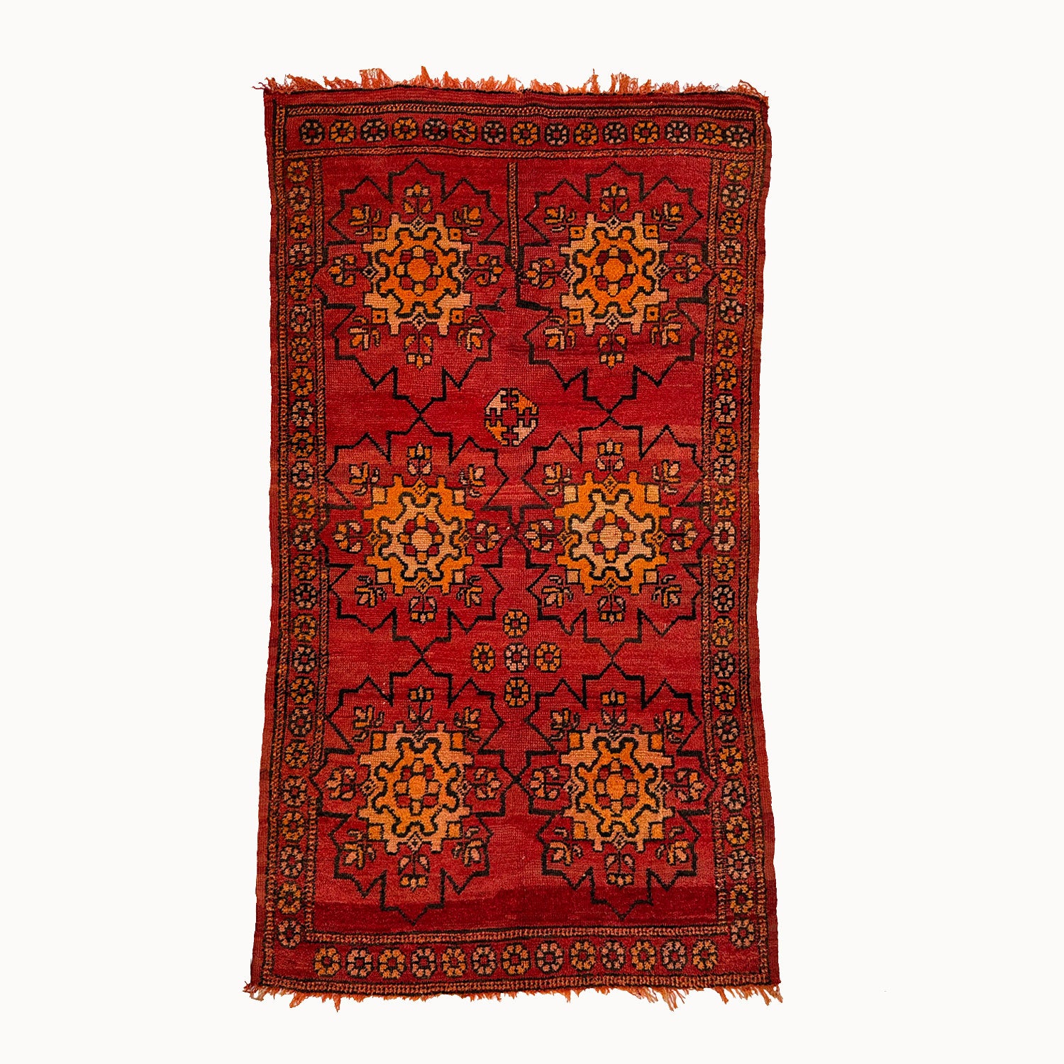 - Hand-knotted in the Atlas Mountains of Morocco using traditional Amazigh weaving techniques.