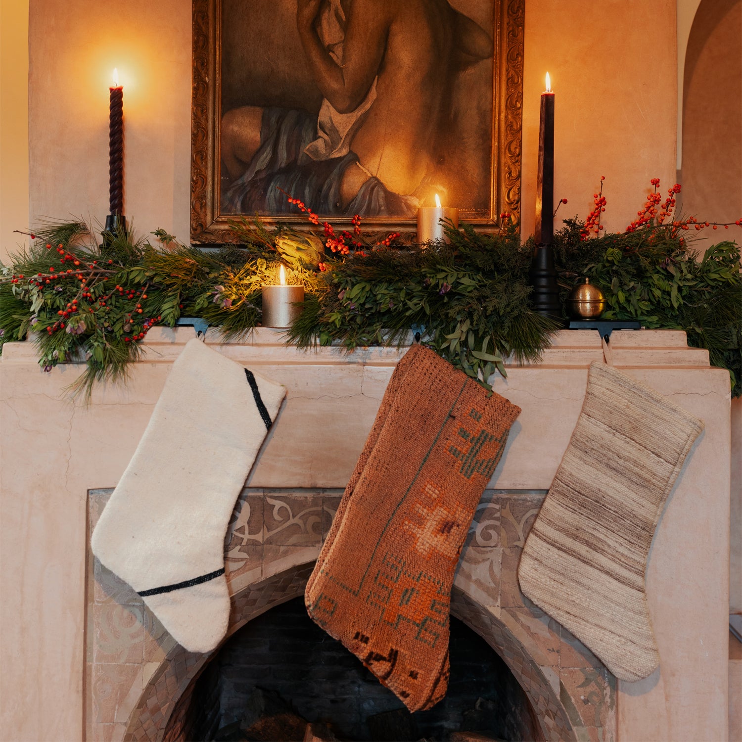 These Apartment F exclusive stockings are sustainable and created from Moroccan rugs; traditionally handwoven by Amazigh women in the Atlas Mountains using natural fibers & dyes.