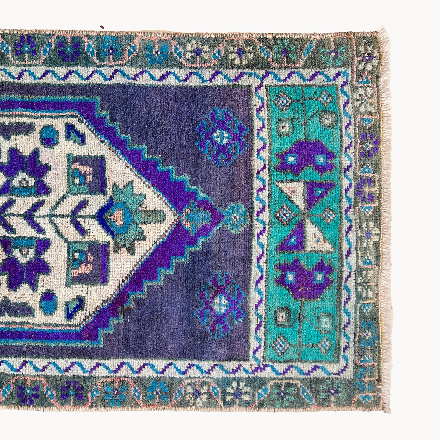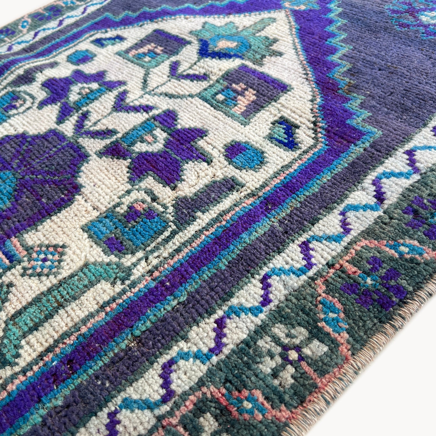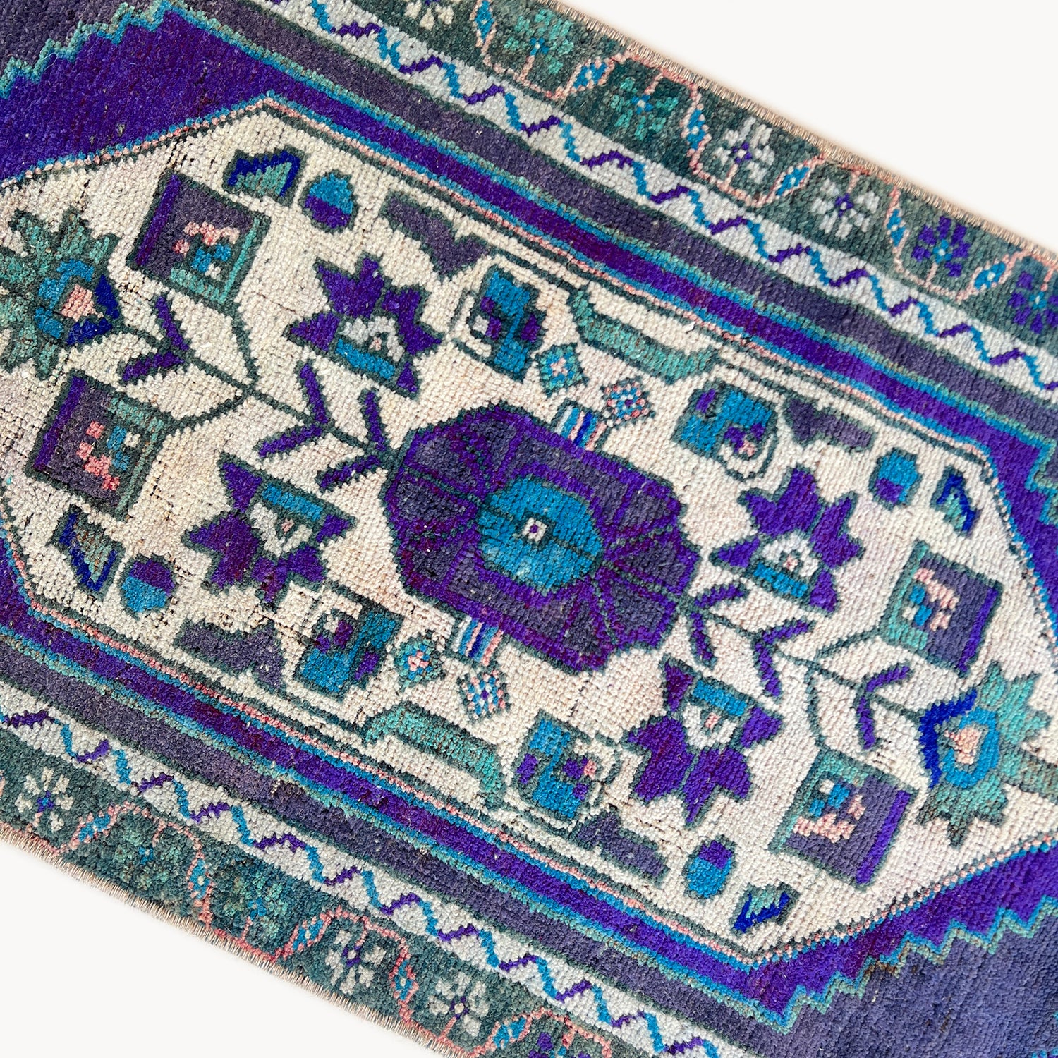 Due to the vintage and handmade nature of our rugs, there may be minor imperfections and signs of wear. We believe this adds character to the piece and lends to each rug being truly one of a kind.