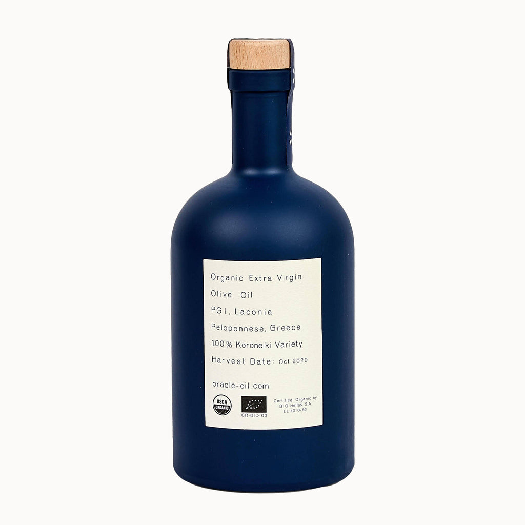 Oracle Olive Oil is a premium Greek extra virgin olive oil made from 100% organic Koroneiki olives, sourced from a collective of seaside olive farms in the Peloponnese — including one belonging to the family of Oracle’s founder. Koroneiki olives are unusually rich in polyphenols and oleocanthal, creating an oil with a very low acidity level of 0.22%.