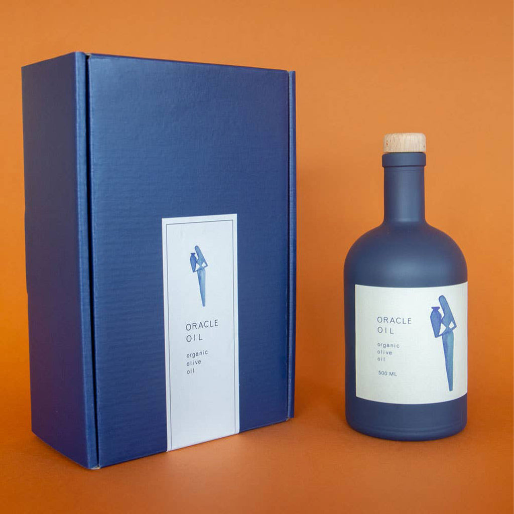 - Oracle is packaged in a navy-blue bottle designed by the artist Alejandro Cardenas, and UV-coated to prevent any oxidation of the oil through light exposure.