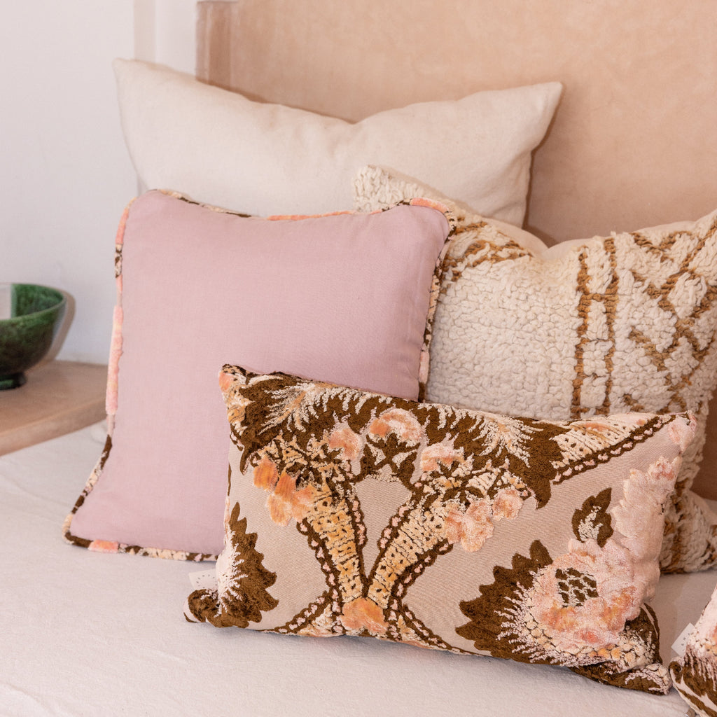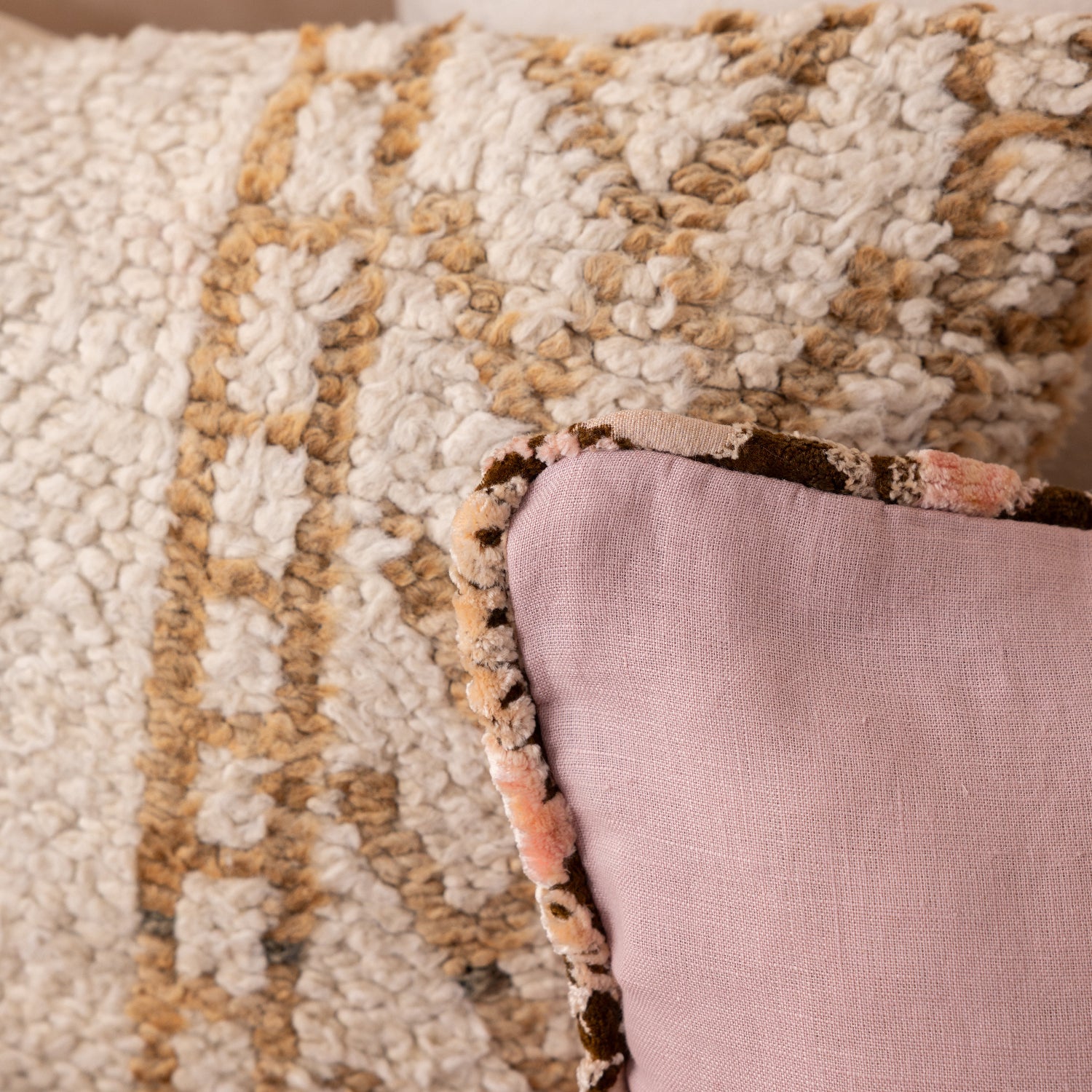 These pillows are each one of a kind and handmade from fragments of a vintage rug. They add the perfect amount of texture and warmth to any combination of pillows.