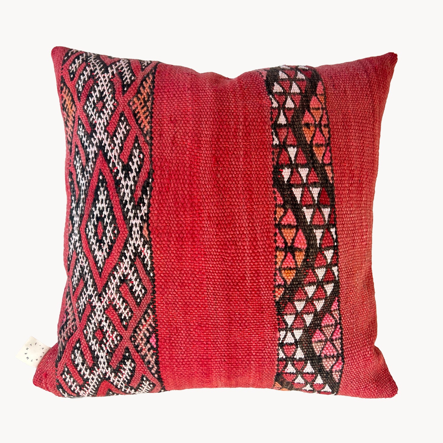 These pillows are each one of a kind and handmade from pieces of vintage hand-woven Moroccan Kilim. They're soft to the touch and add the perfect amount of texture and warmth to any pillow combo.