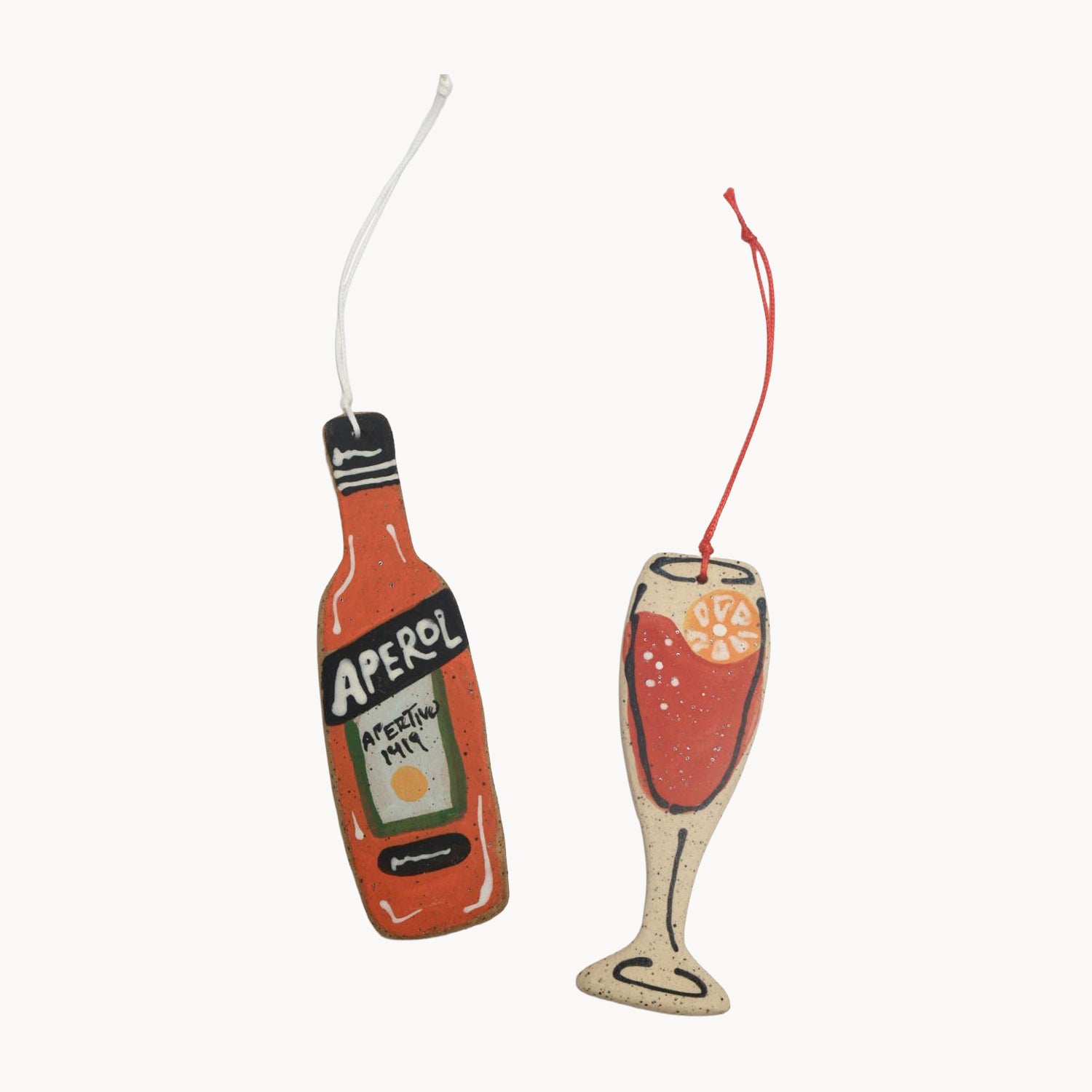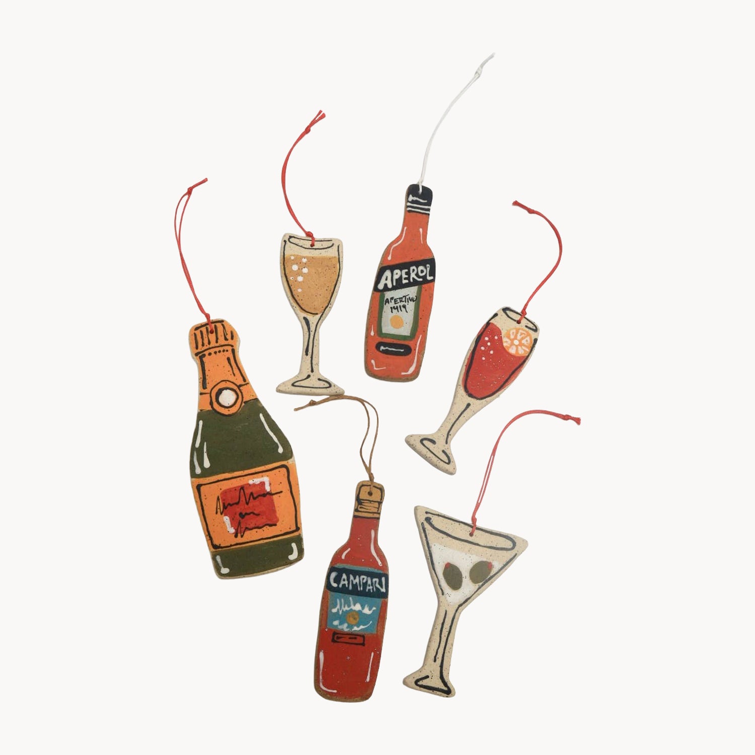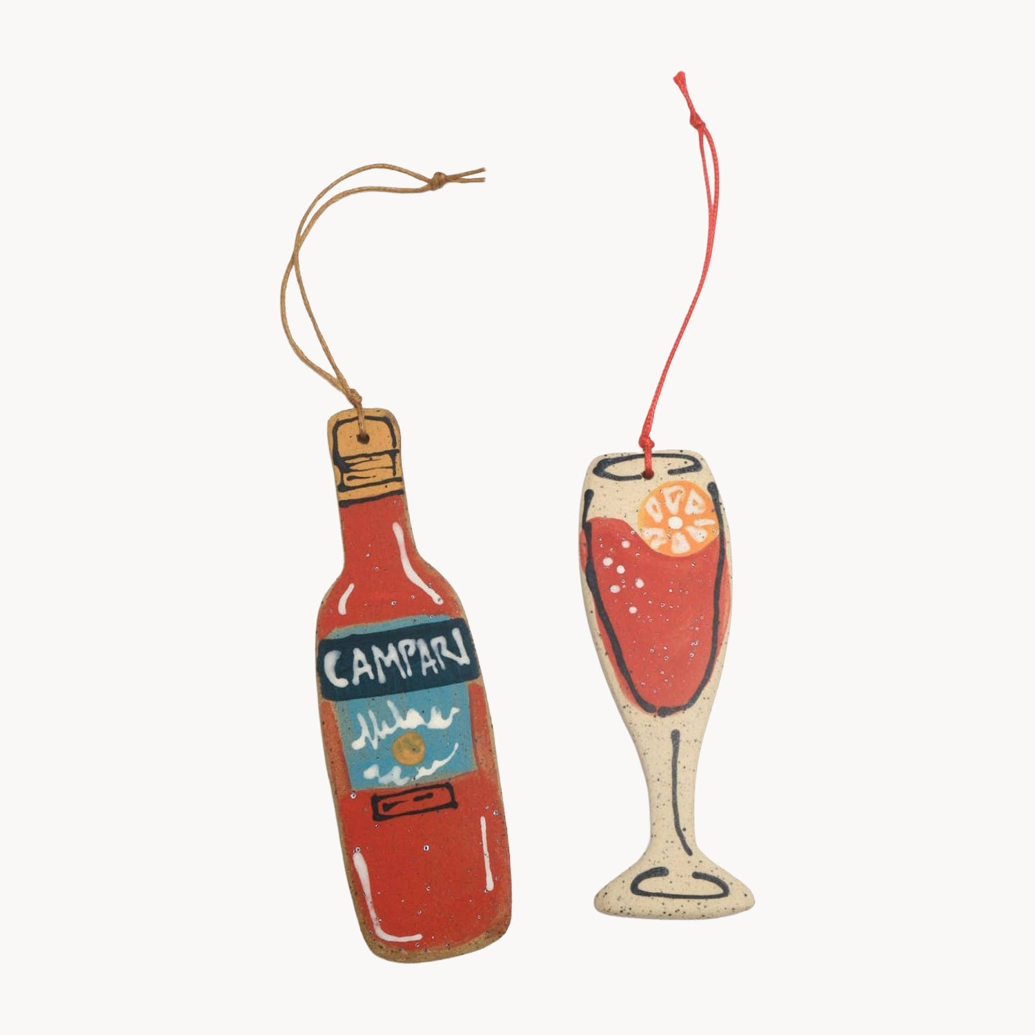 Handmade ceramic Spritz Ornament with hand-painted details in colorful underglaze. Each ornament is hand-stamped with the Melville Ceramics logo on the back and strung with a durable nylon chord. These beautiful one of a kind ornaments make for lovely gifts during the holiday season.