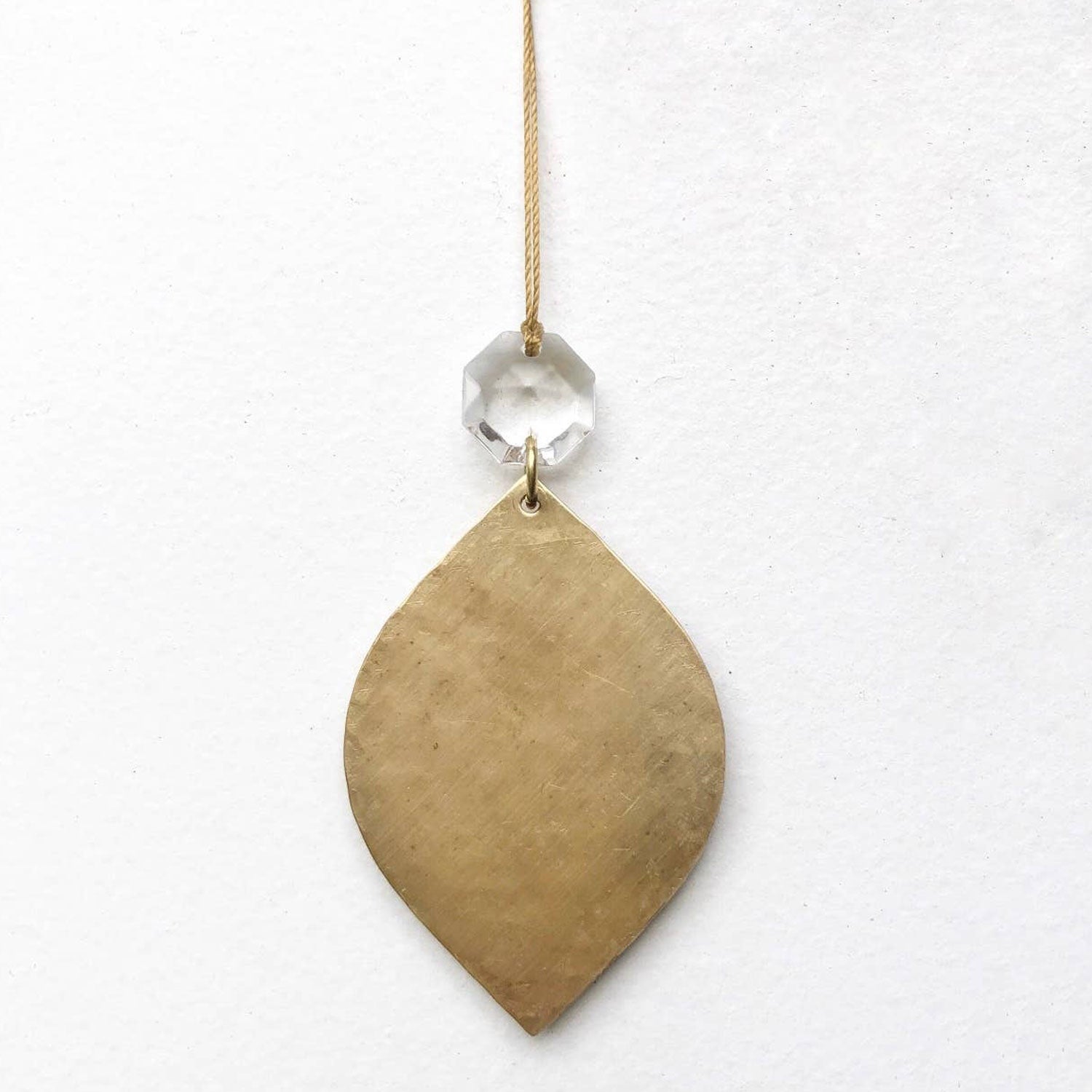 This handcrafted and leaf-shaped ornament will look stunning hanged on your Christmas tree or wrapped up as a gift. Made from hand-cut/hammered brass and vintage faceted crystal, you can also use it to decorate gifts & Christmas stockings.