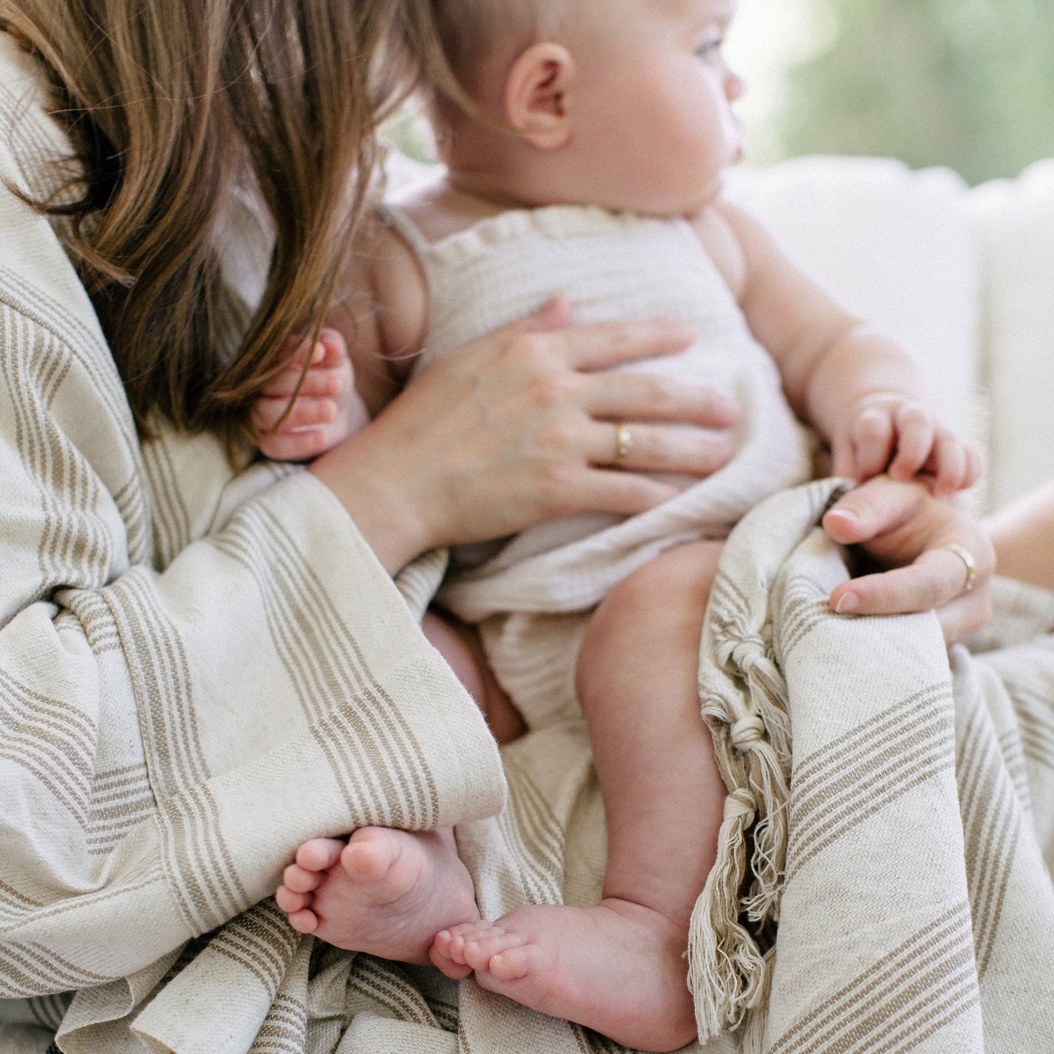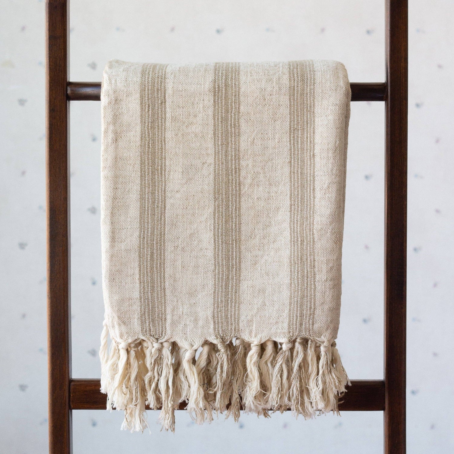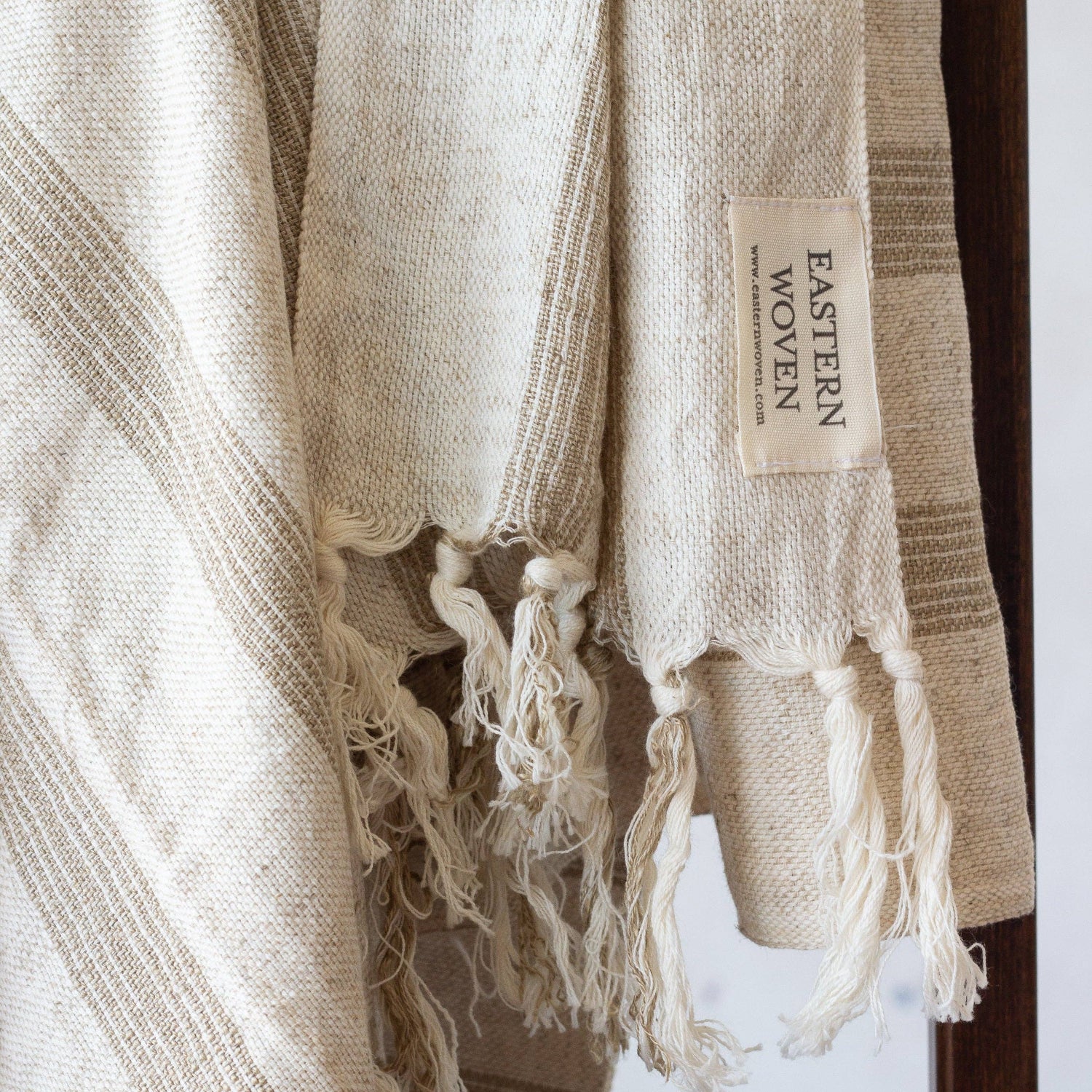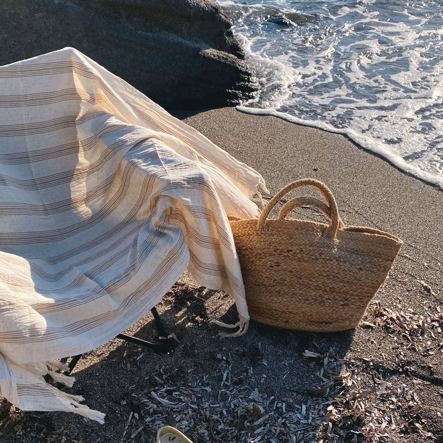 The Ciragan towel features subtle olive stripes and a calm, simple design inspired by nature. It works well as a beach towel but is also practical for everyday use throughout the year. These oversized towels are woven in Turkey on traditional semi-automatic looms, with hand feeding and hand finishing involved in each piece. Over time, they become softer and more absorbent with regular washing. They are made to handle frequent use over many years, helping reduce the need for replacement.