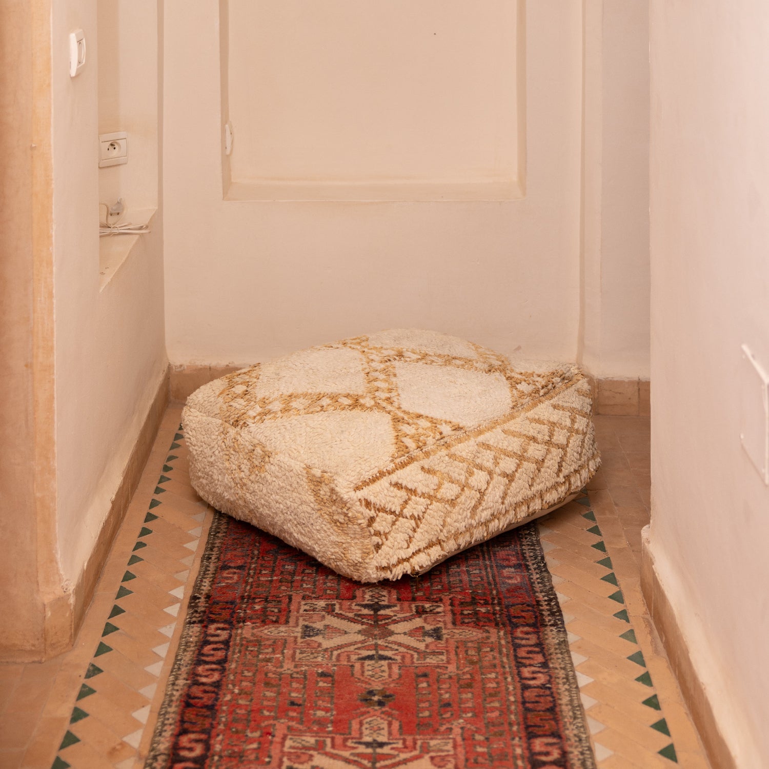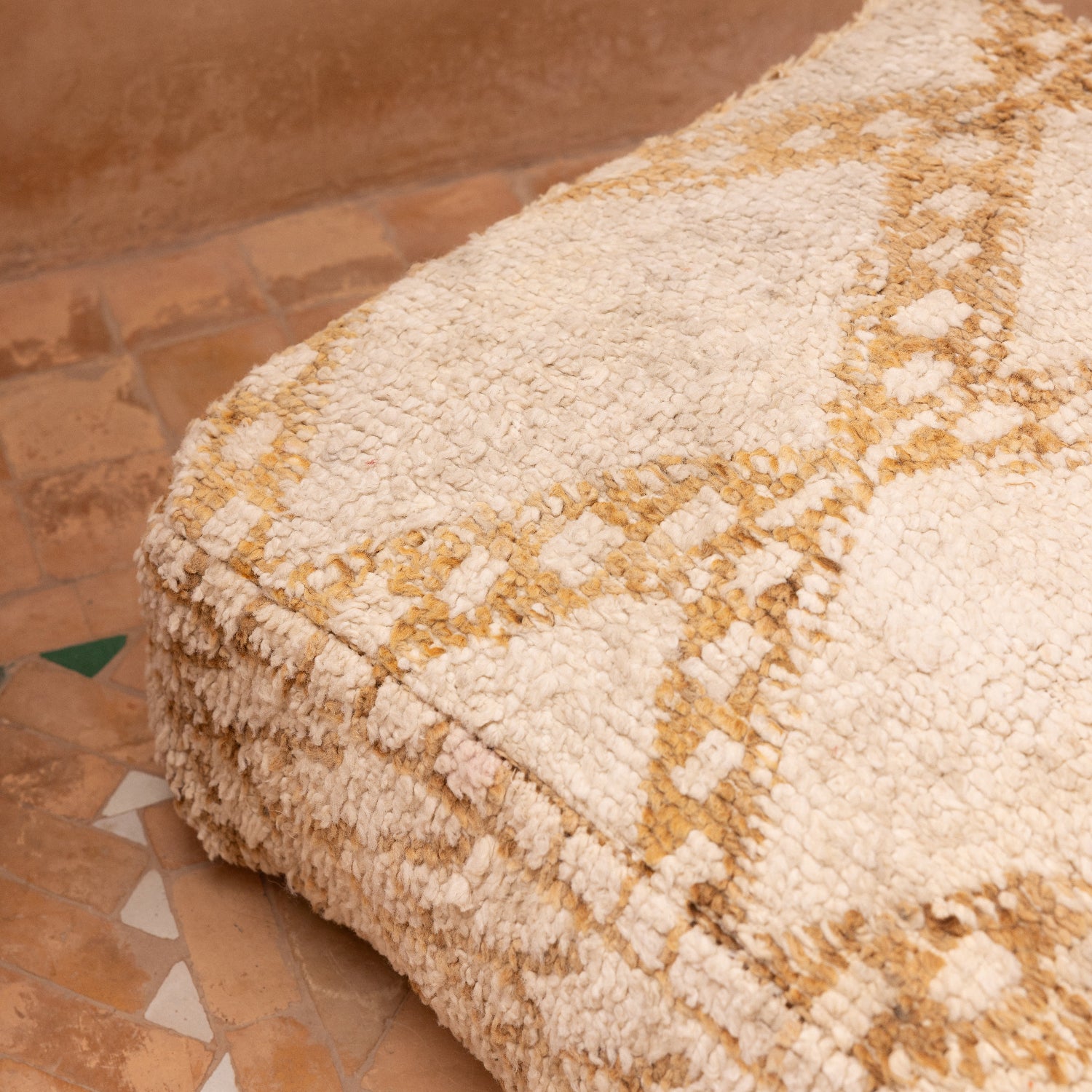 The design on the poufs may vary slightly as they are all handmade from fragments of hand-knotted Moroccan rugs.