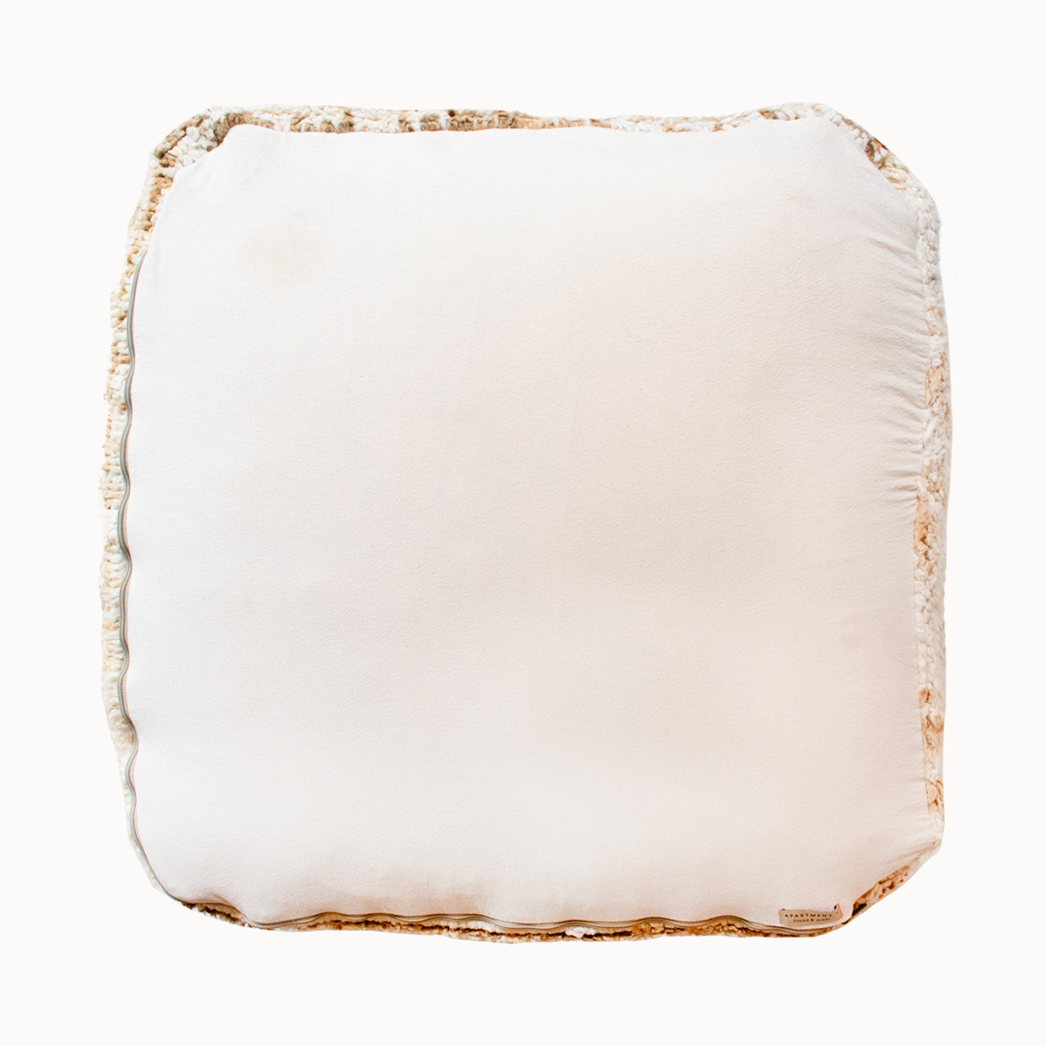Each pouf is one of a kind, even when cut from the same rug or blanket. The vintage textiles are first professionally cleaned and then cut and sewn into a floor cushion, with a strong zipper and neutral canvas bottom.
