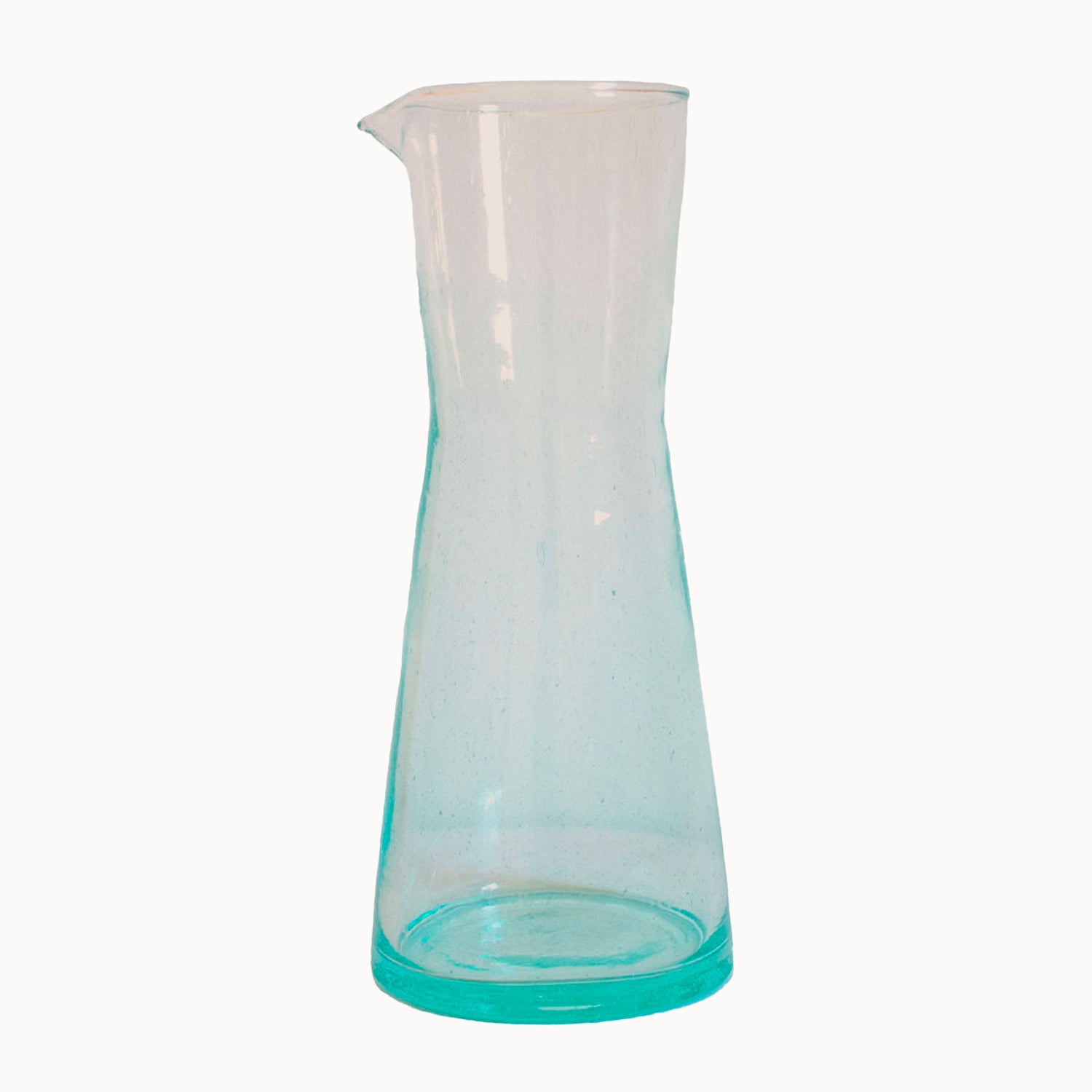 Whether serving your favorite beverages or using as a bed-side carafe paired with our handblown nightcap glass (sold separately) which fits perfectly at the top of it, elevate your table setting with this stunning moroccan handblown slender glass carafe. Handcrafted by skilled artisans in Morocco.