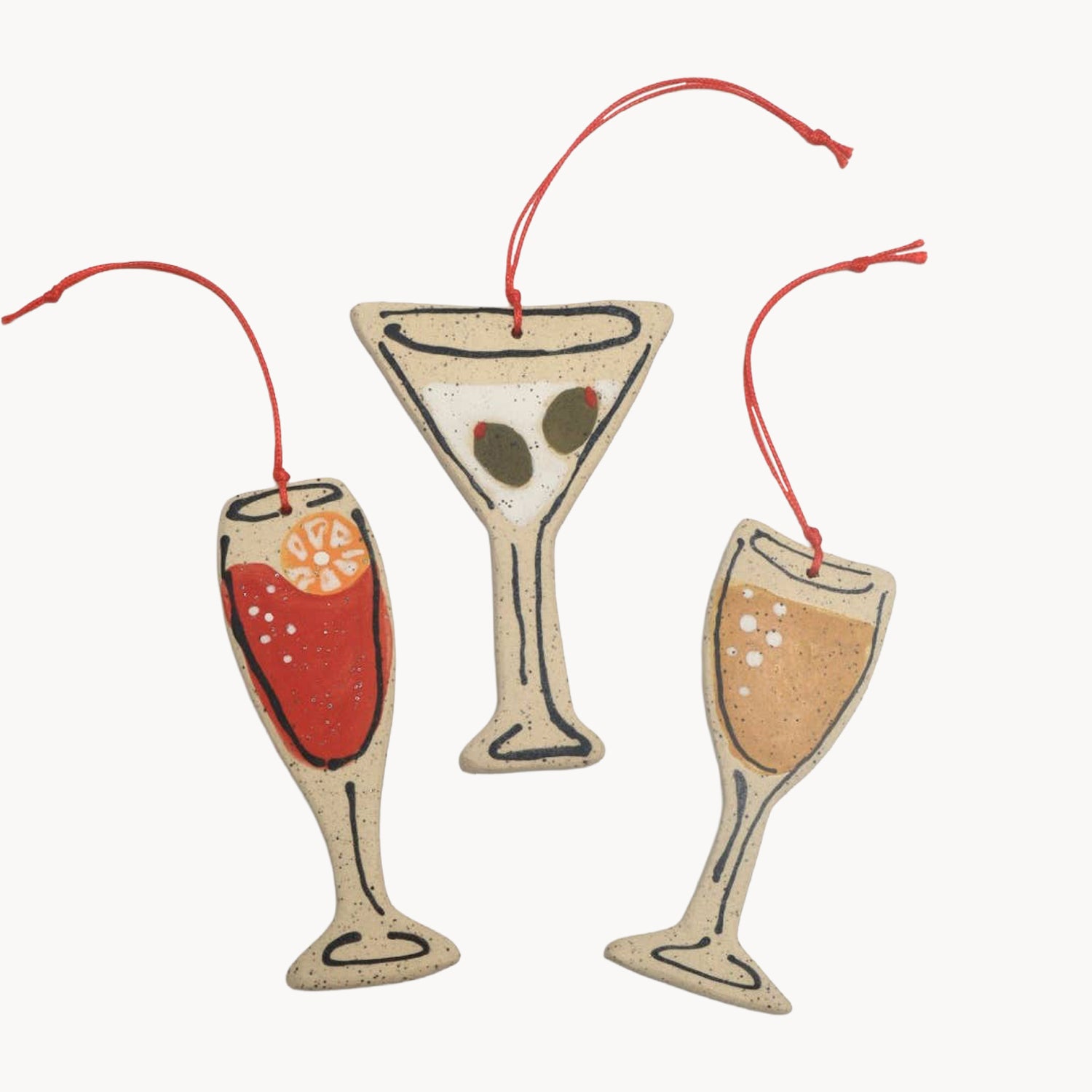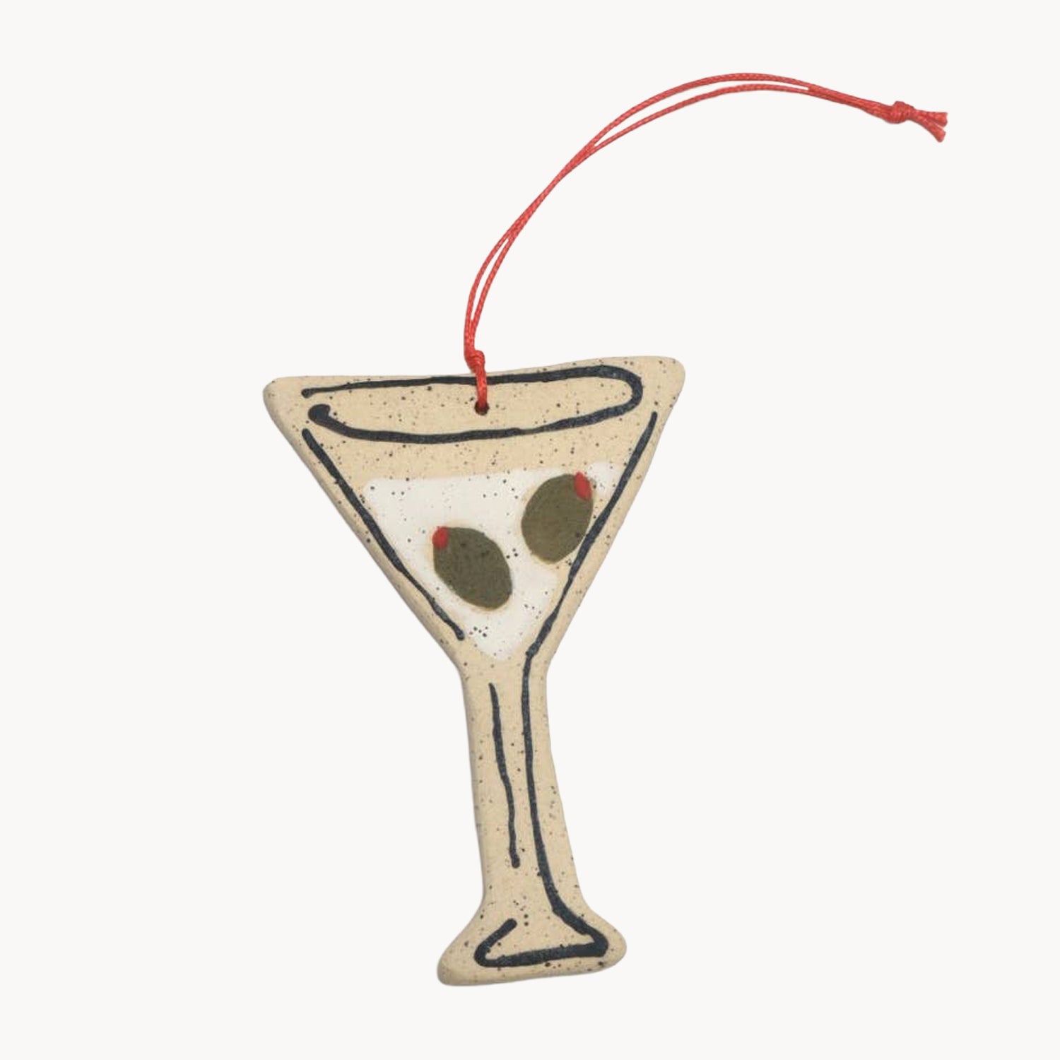 Handmade ceramic martini Ornament with hand-painted details in colorful underglaze. Each ornament is hand-stamped with the Melville Ceramics logo on the back and strung with a durable nylon chord. These beautiful one of a kind ornaments make for lovely gifts during the holiday season.