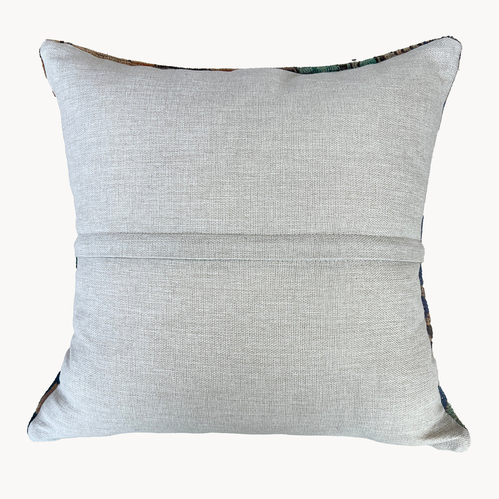 Transform the look of your bedroom with this handwoven pillow made from a Vintage Turkish kilim rug. Sustainable and perfect for everyday use.