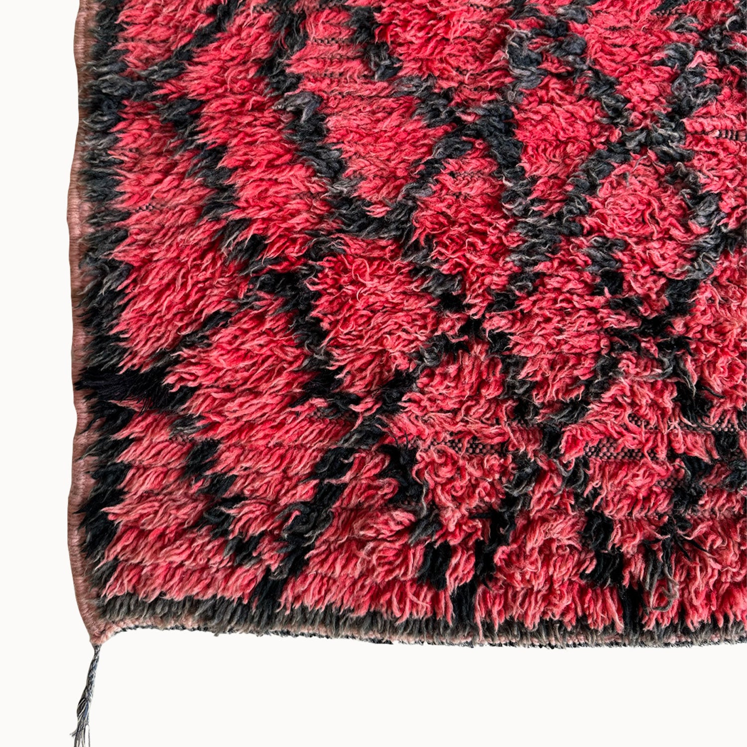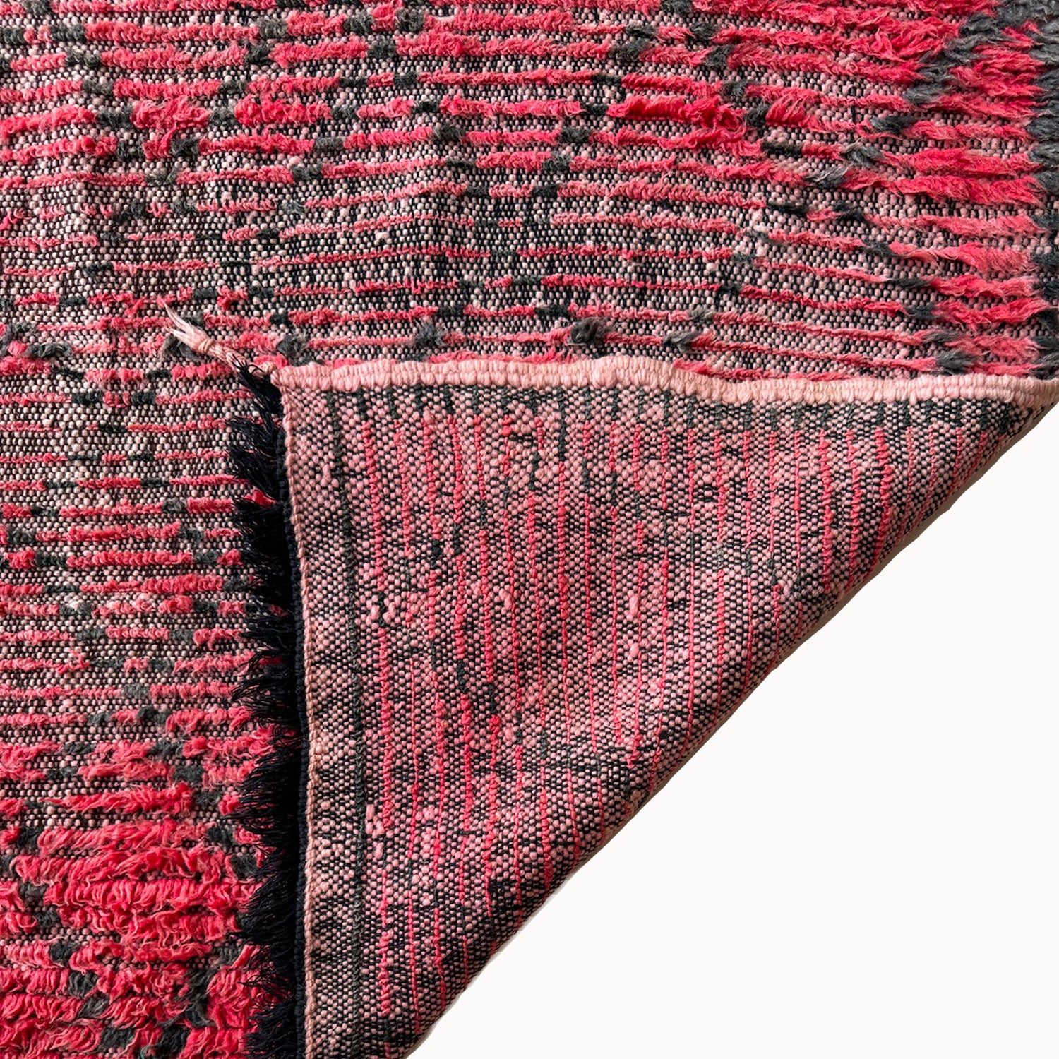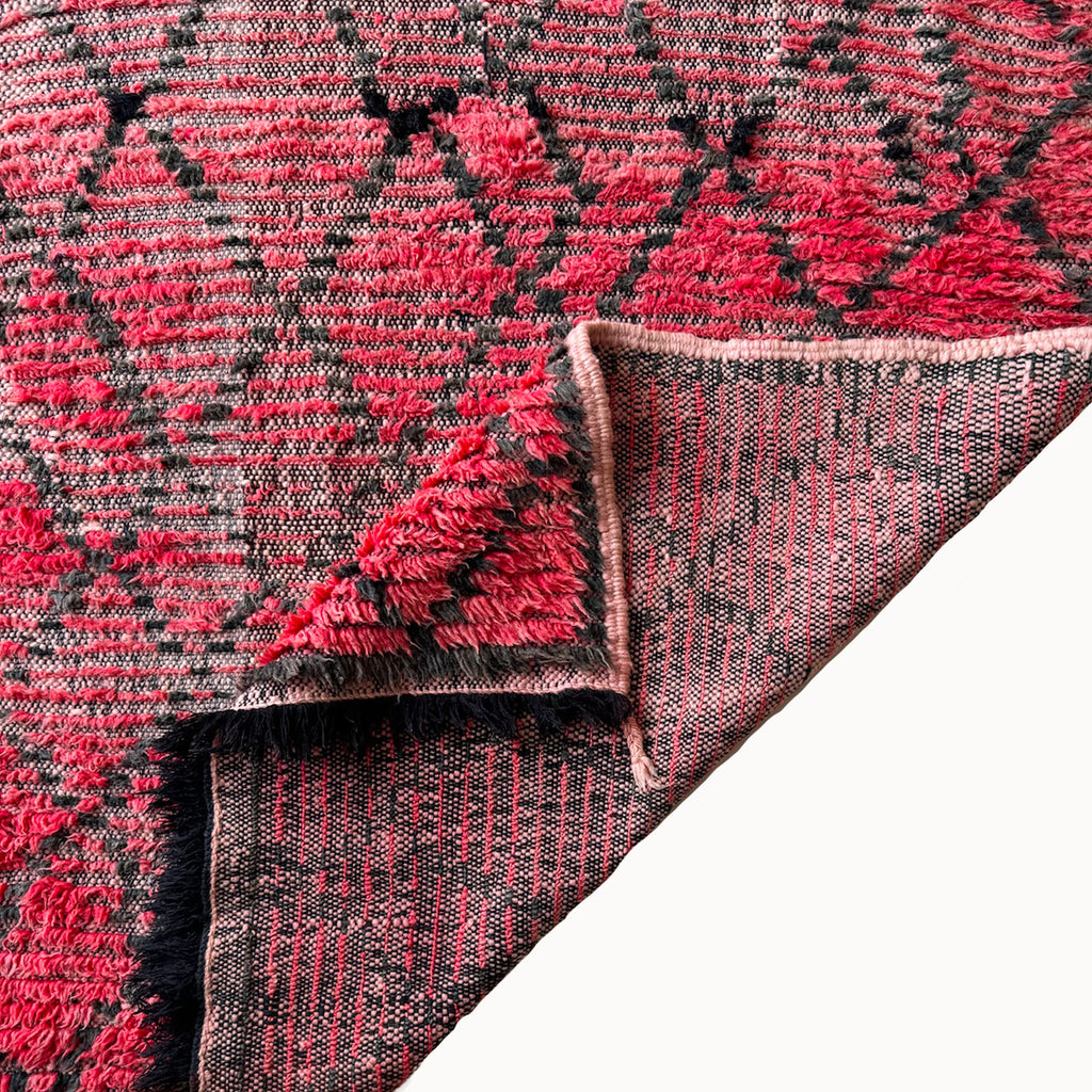 - Hand-knotted in the Atlas Mountains of Morocco using traditional Amazigh weaving techniques.