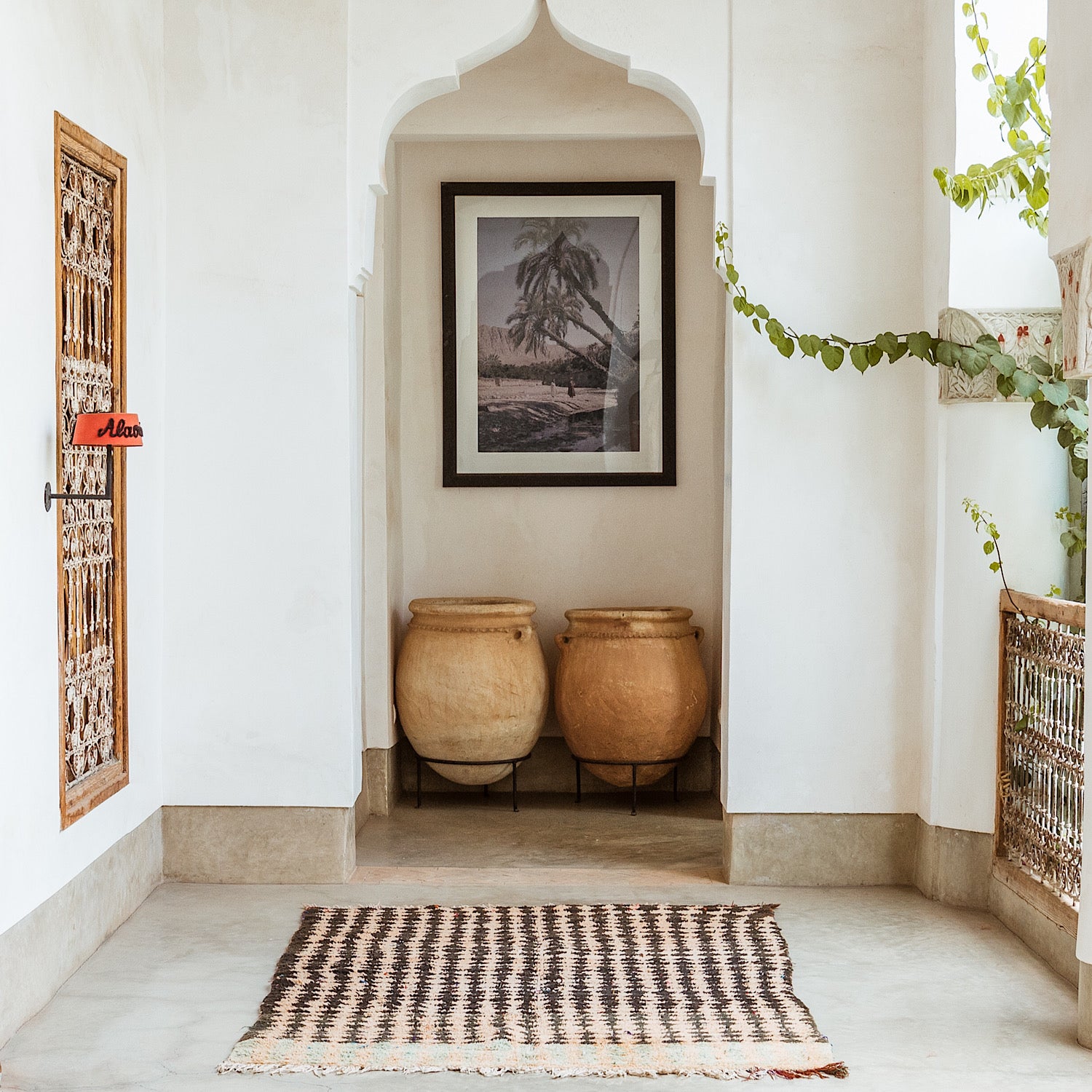 - Faras is a handcrafted Moroccan rug with diamond checkerboard patterns. This rug is perfect to add a delicate rhythm to your interior decor.