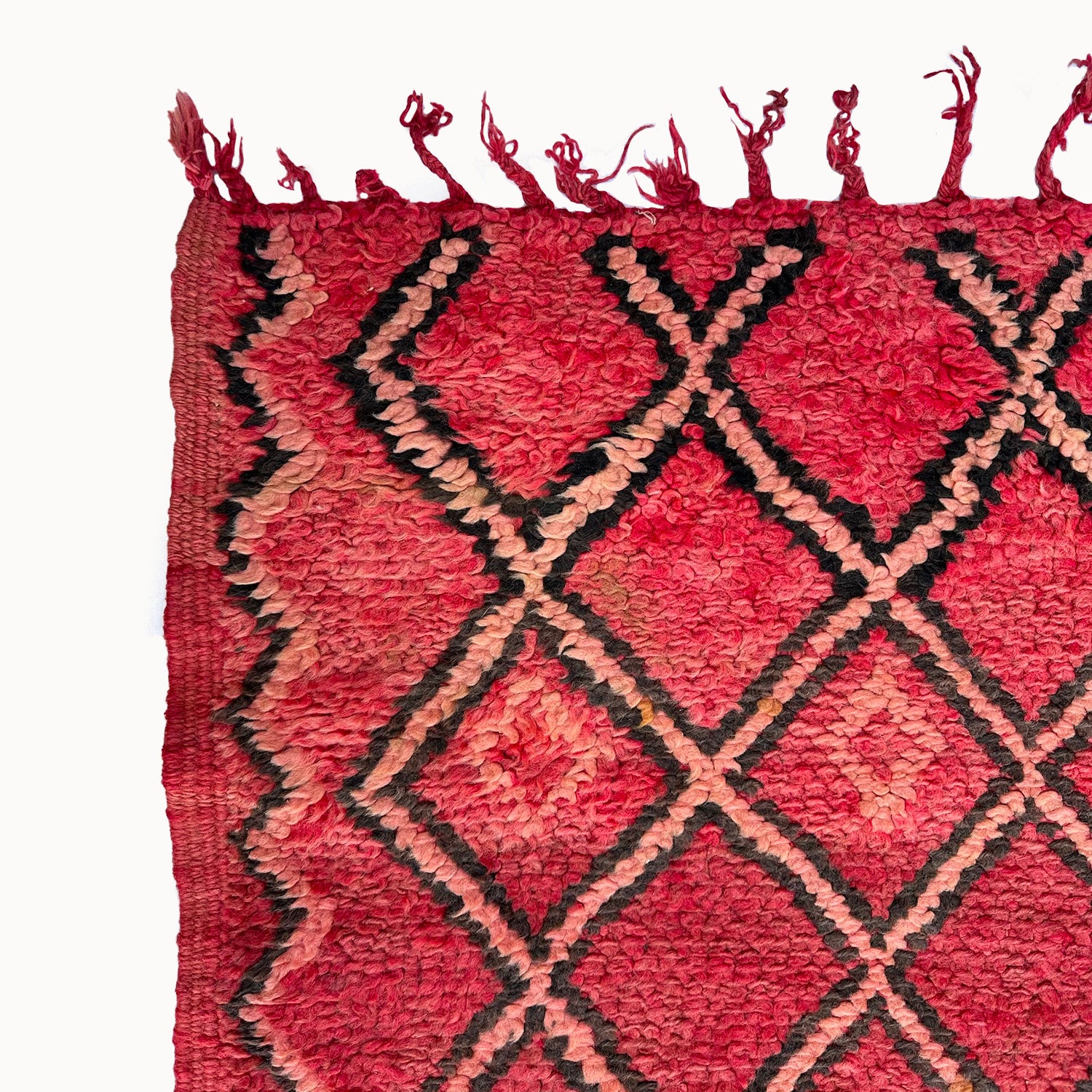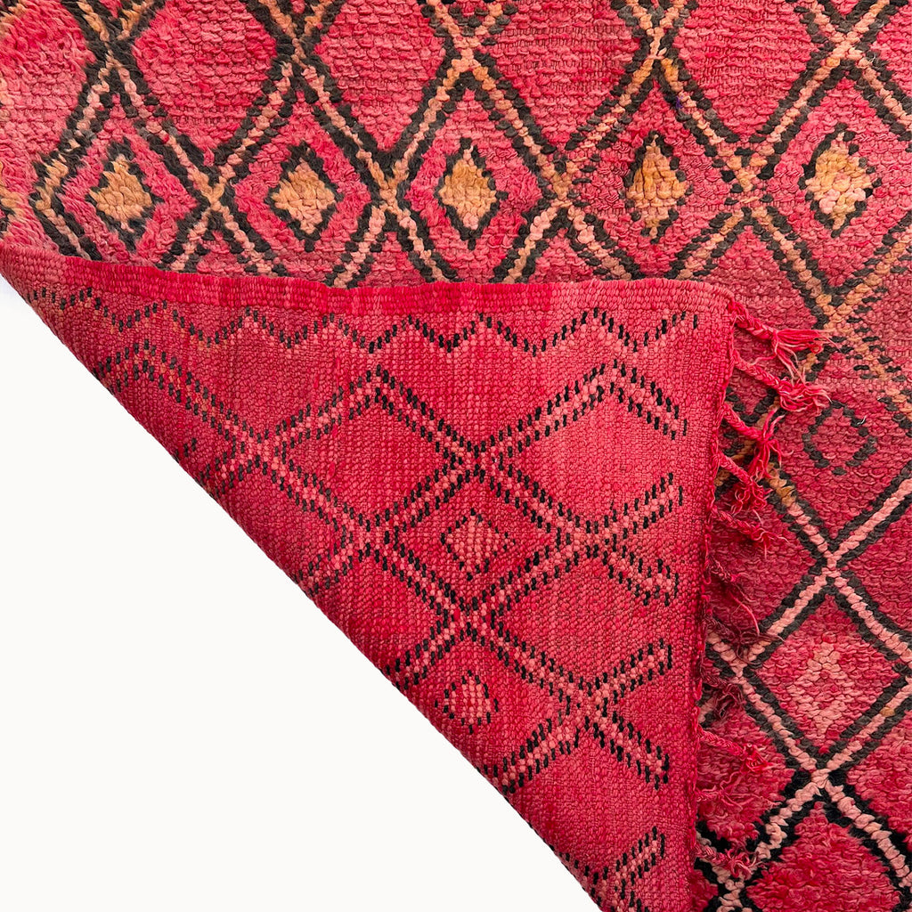 - Hand-knotted in the Atlas Mountains of Morocco using traditional Amazigh weaving techniques.
